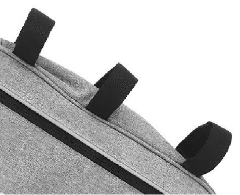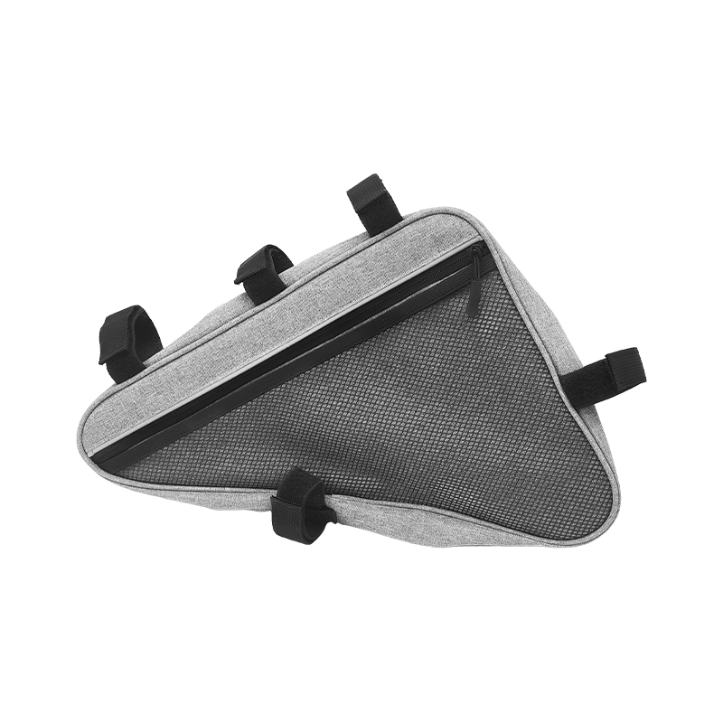 Серая треугольная сумка для горного велосипеда BI-03 имеет несколько карманов со стратегически продуманными отделениями для удобного хранения таких вещей, как телефоны, кошельки, ключи и бутылки с водой. Его размеры 34 x 6,5 x 26 см, объем 5,75 л. Он оснащен светоотражающими полосами для повышения безопасности во время езды в ночное время и может быть персонализирован логотипом. Водонепроницаемая боковая молния облегчает переноску.